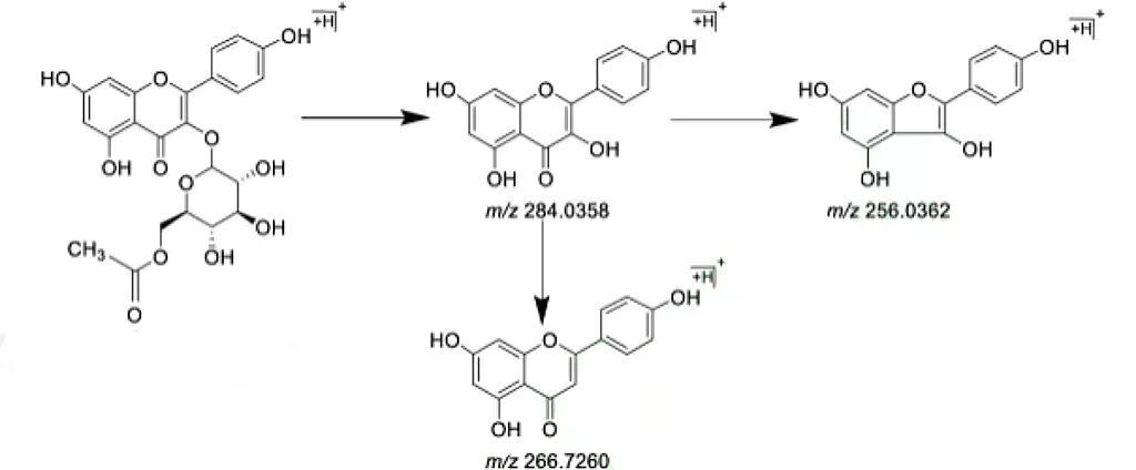 通過精確質(zhì)量、同位素豐度比、同位素精確質(zhì)量比及MS/MS四維信息關(guān)聯(lián)分析給予推測(cè)分子量、分子式,部分化合物可通過譜庫(kù)鑒定給予結(jié)構(gòu)式。